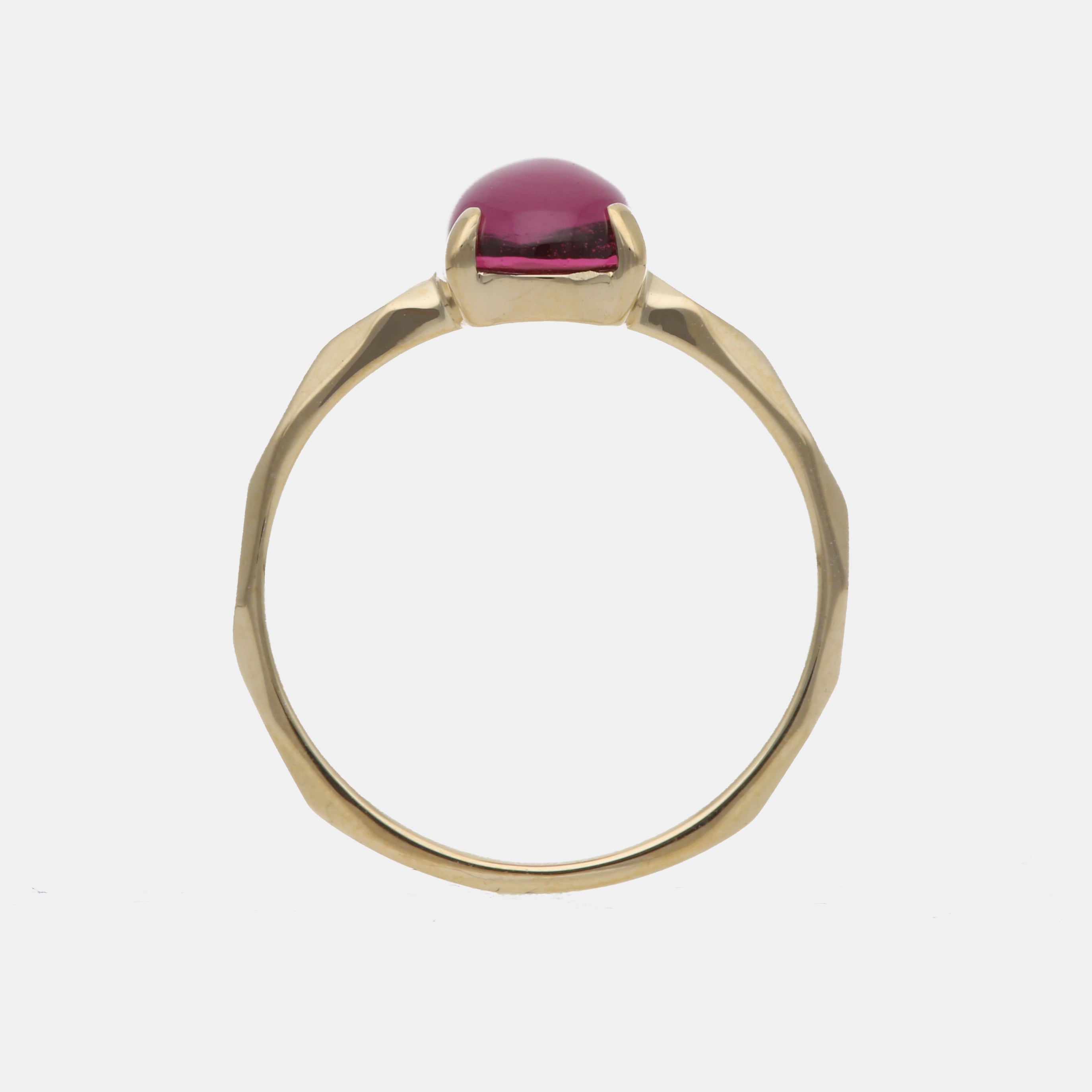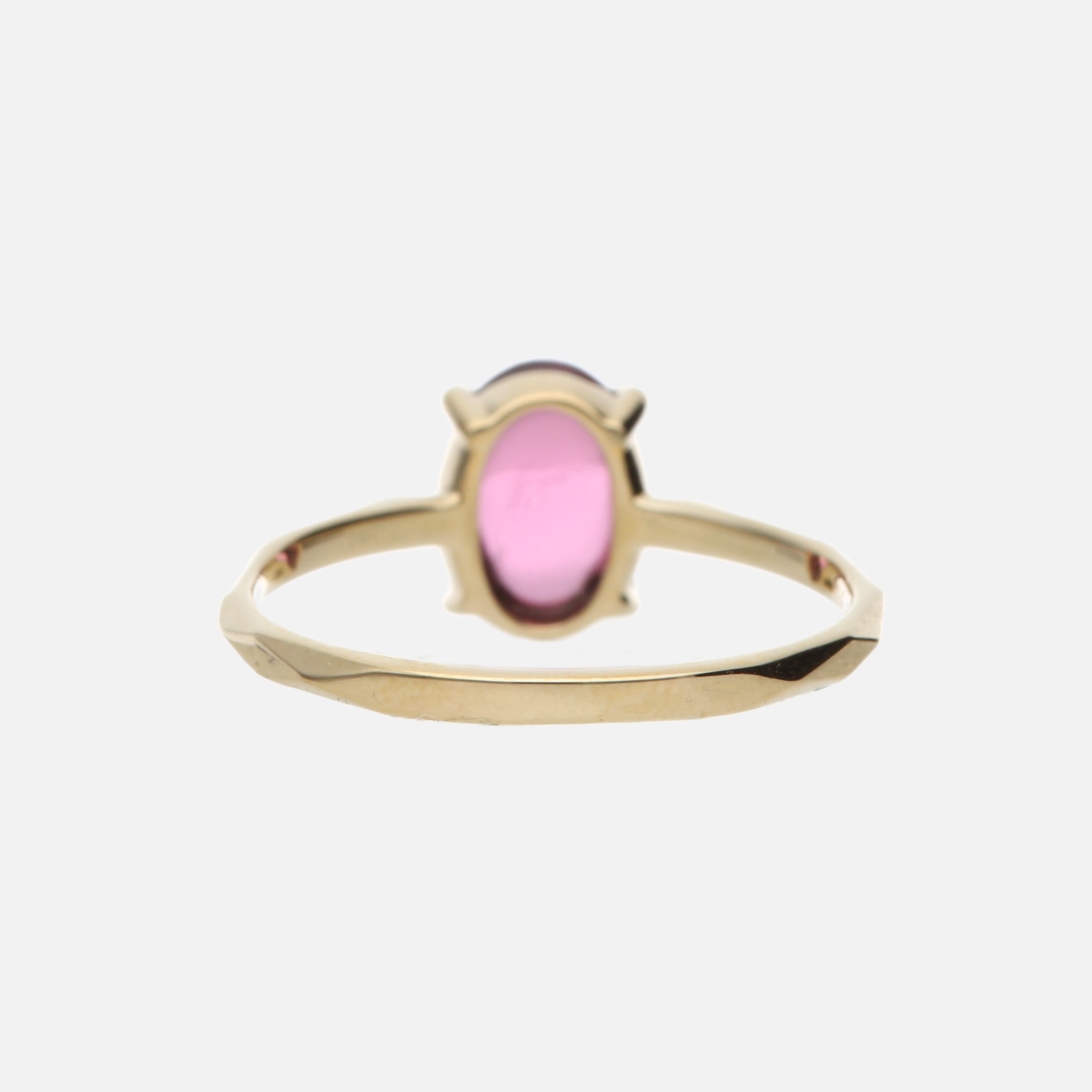上品なロゼワインの様な色彩をもつロードライトガーネット。女性らしい優美な印象を演出します。つるんとしたシルエットが人気のルースカットです。アーム部分はダイヤモンドカット風のデザインが施されており動く度に輝きを魅せてくれます。